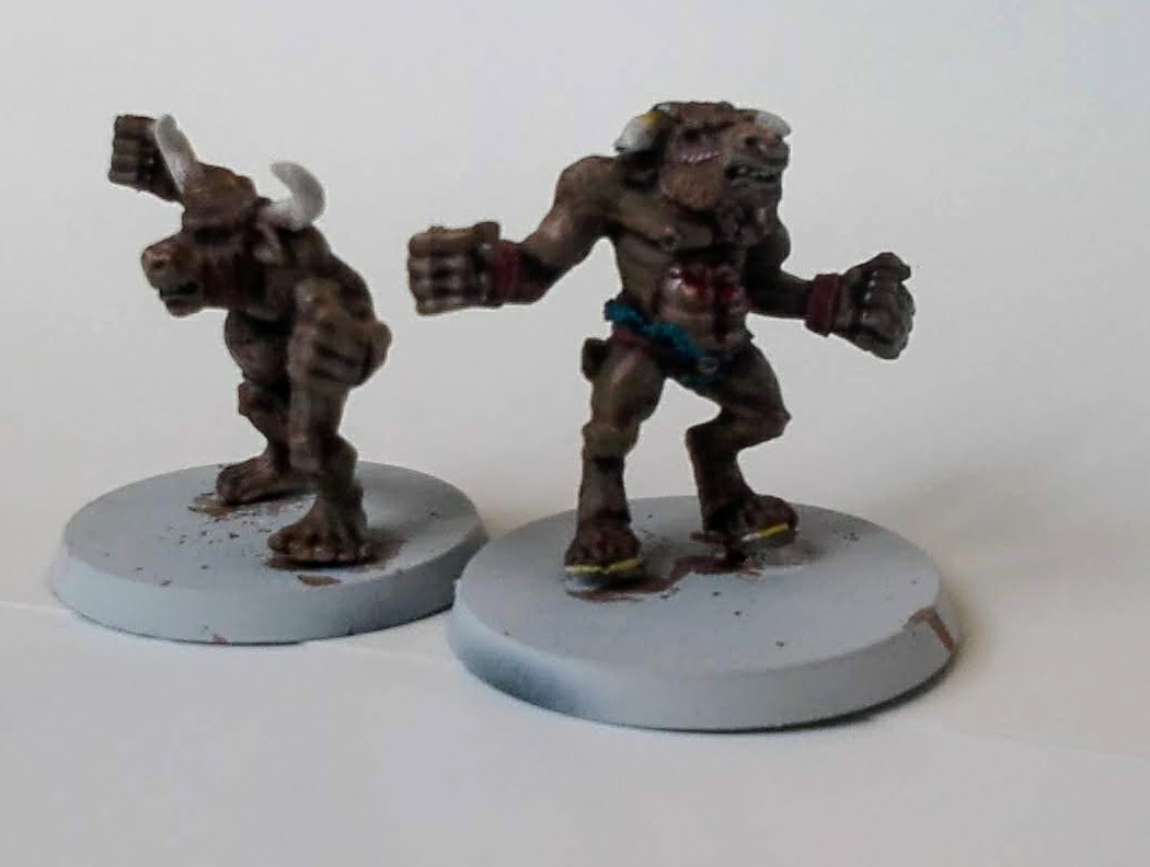 Två classiska oldhammer minotaurer som hejar på chaos, chaos pact eller andra lag som mer slåss än spelar boll.