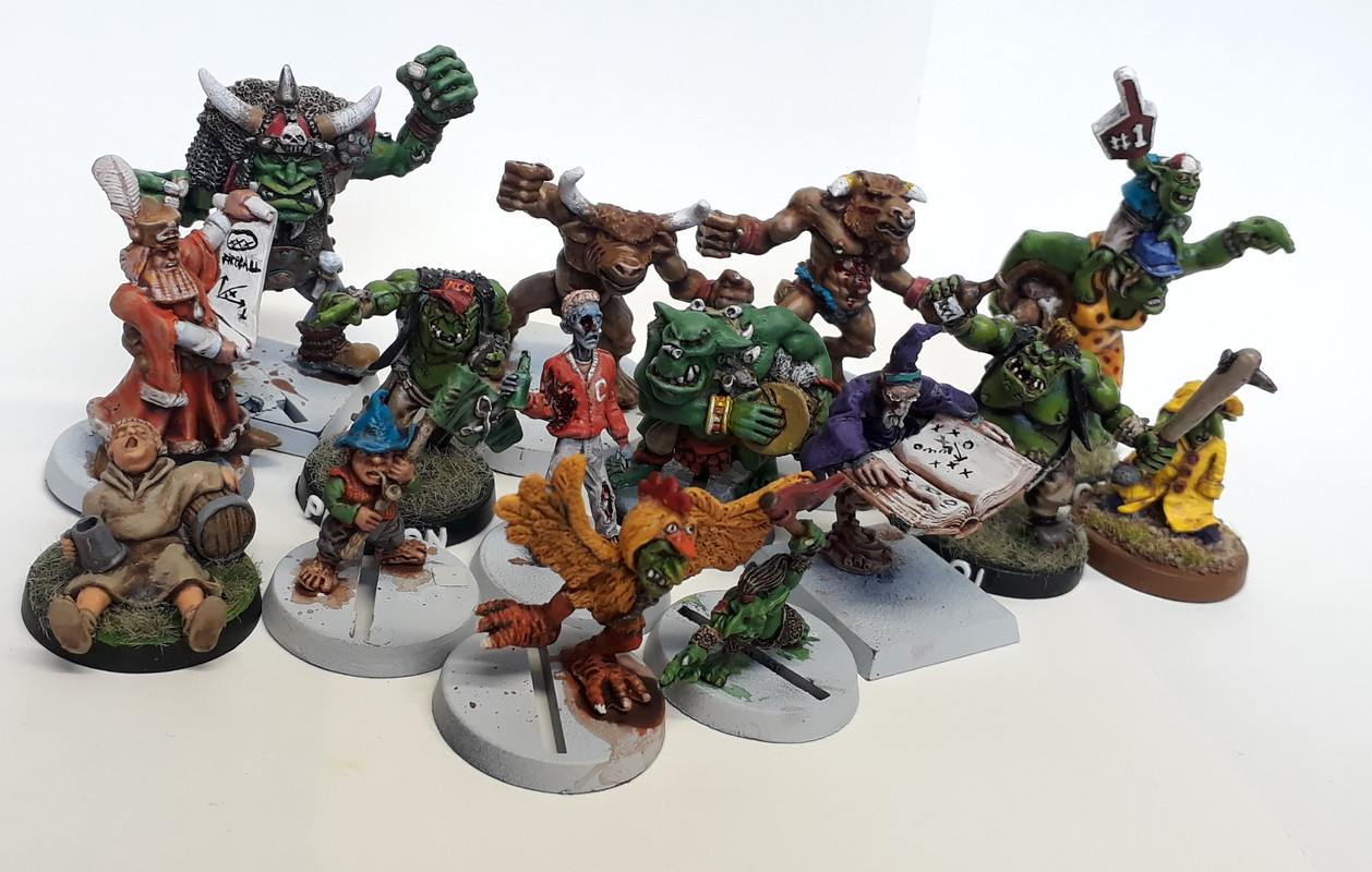 Först började jag med en inventering av de lag jag har där det finns en rad, redan målade, modeller som kan platsa som publik.