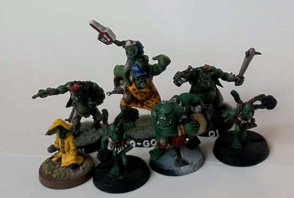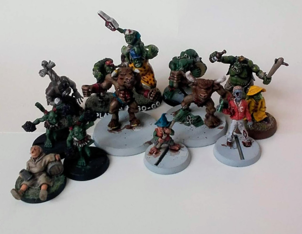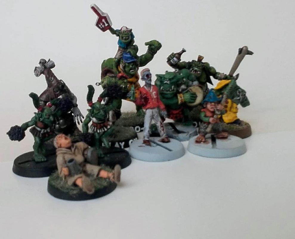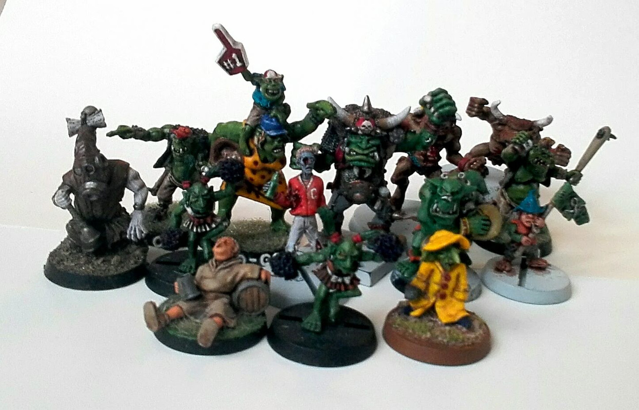 Den stora grejen med arenor till Blood Bowl är dock att de nästan alltid ser ut som på bilden ovan, dvs läktarna är kusligt tomma. Jag har sett åtminstone två stora byggen där läktarna gapar tomma sedan att kreatören har klappat ihop efter att själva byggnaden är upprättad. Eftersom detta är en stor risk, och att jag har på mig ganska mycket tid innan jag får tag på grundplanen så tänker jag börja med publiken. Därav gjorde jag vid jul en inventering av alla möjliga modeller som passar som publik, var god se denna tråd för resultatet, för att börja måla och fixa så jag har några modeller att ställa i arenan när den är färdig.