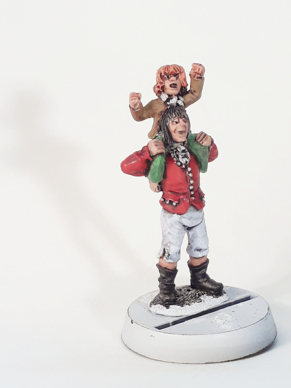 Liksom förra modellen kommer dessa två (tre??) från Eurekas figurset "Mob". Generellt är det så ont om hejande modeller så dessa som skriker eller gestikulerar engagerat är det roligt att lägga till publiken. Fotona nedan blev sisådär nu när jag kollar på dem. Alternativt behöver jag gå över delar av modellerna med penseln igen...