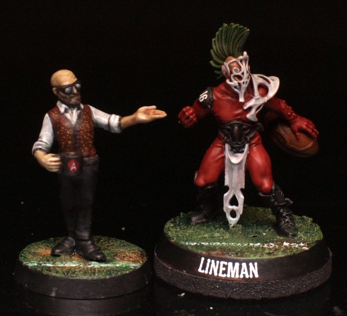 • Det saknades en coachfigur för det här laget så jag modellerade en på Heroforge och lät en kollega med bra skrivare skriva ut en åt mig.