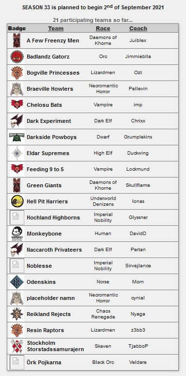 • Nä, det behövs inte. Tänkte bara kolla om jag kunde hjälpa till och lägga in Skulls lag. Man vill ju gärna veta hur många som är med i säsongen :)