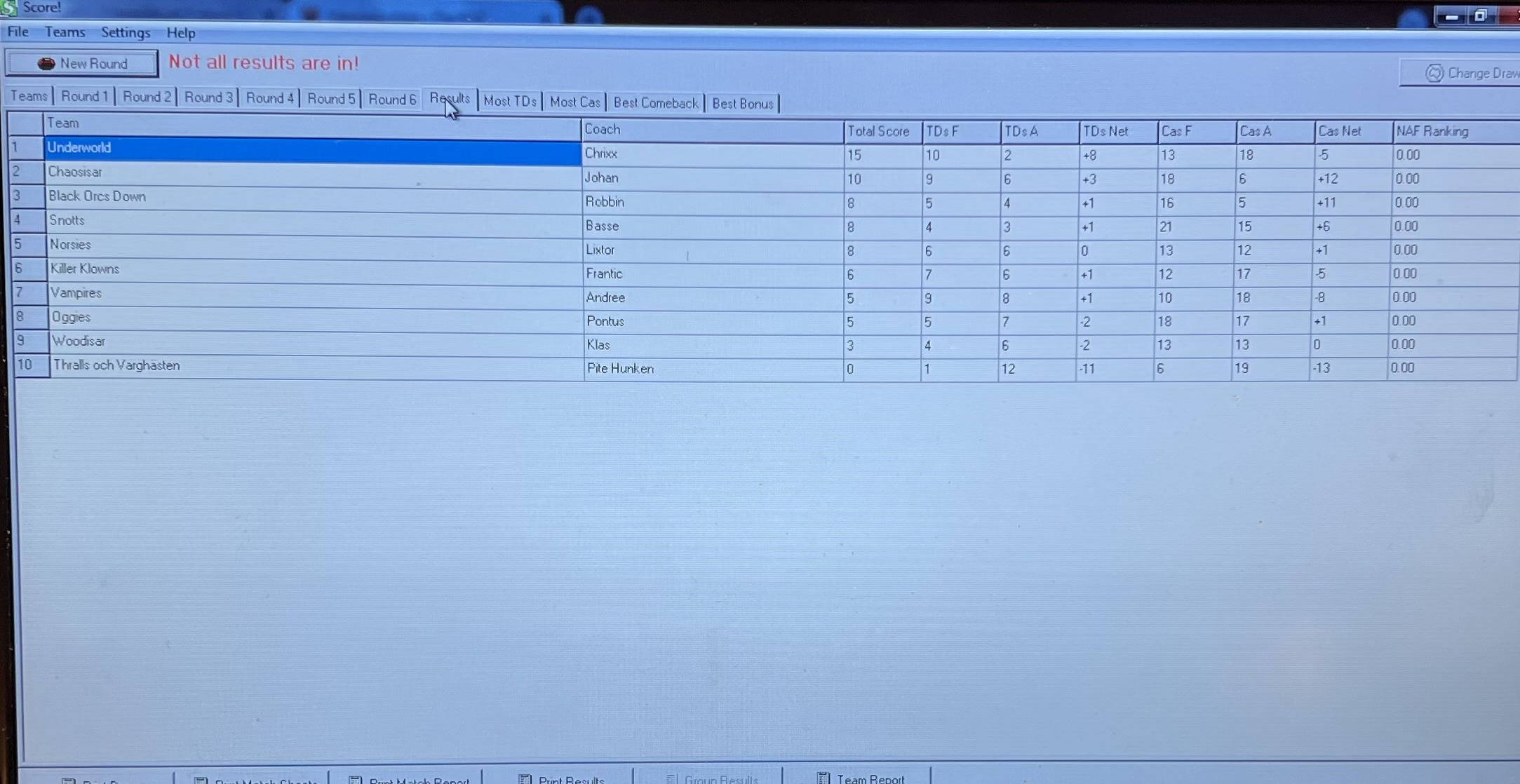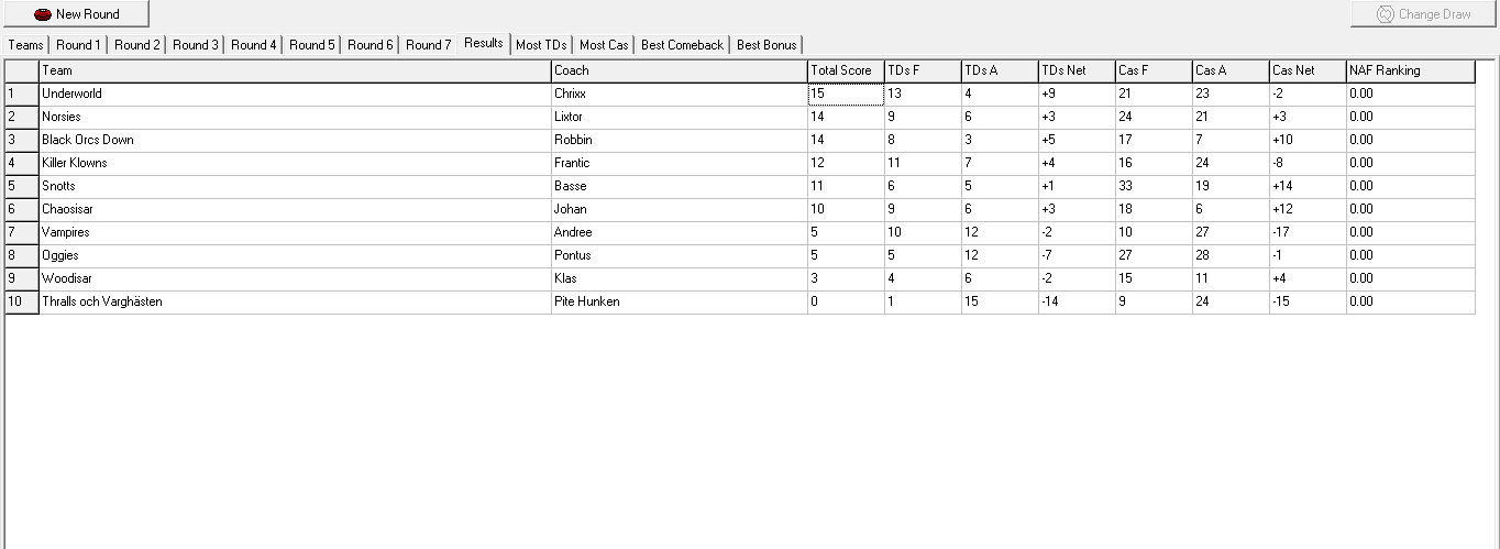 Nåväl jag rapporterade in på NAF ikväll, vet inte varför det står 15 poäng på dig @Chrixx men resultaten stämmer iaf och ratingen ska ändå bli rätt.