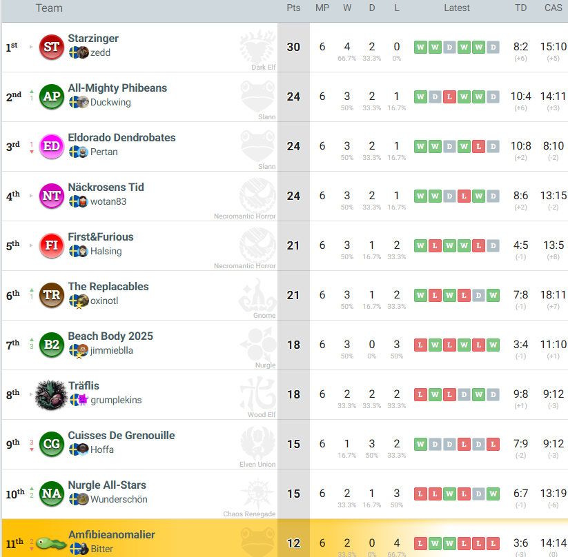 Topp elva efter sex omgångar. Stort grattis, @Zedd!